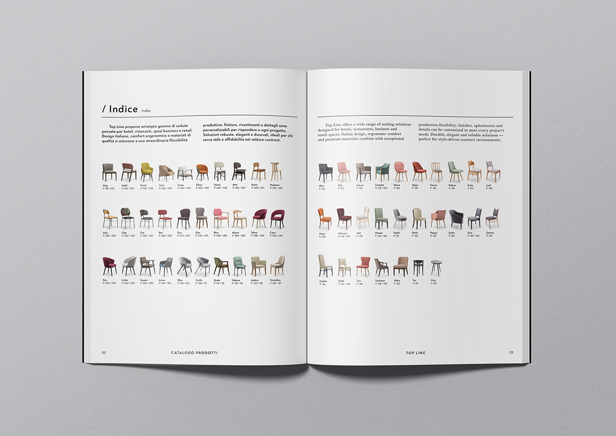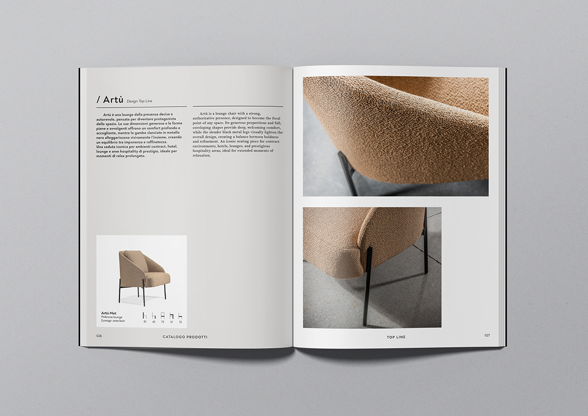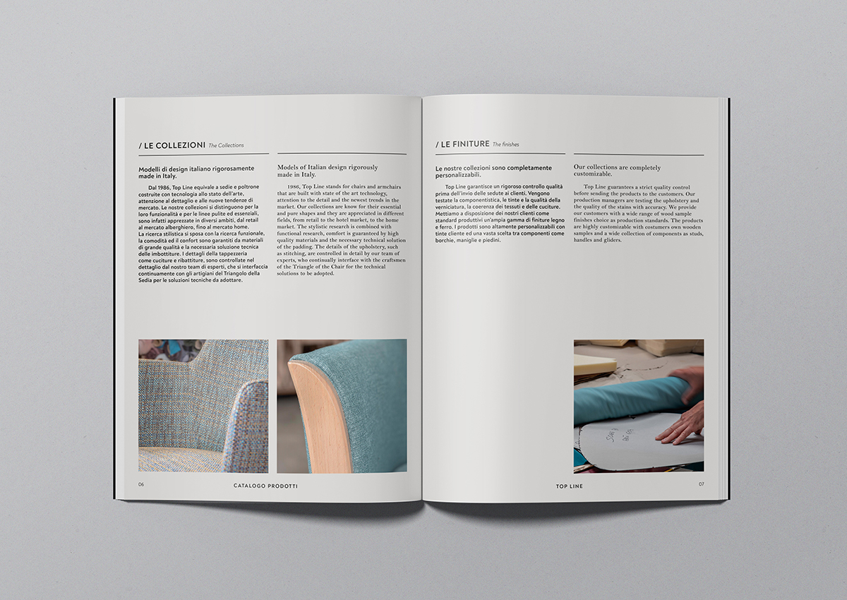 Con il nuovo catalogo, Top Line consolida il processo di rinnovamento e posizionamento del brand in un segmento di mercato più alto. All’interno, fotografati da De Nardo e Zuodar, ci sono i nuovi modelli, quelli aggiornati e le soluzioni pensate per rendere ancora più completa la gamma dei prodotti. Il tutto presentato in una veste grafica essenziale ed elegante curata da Portfolio.
